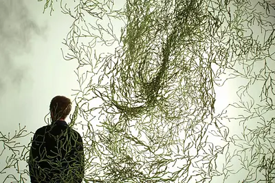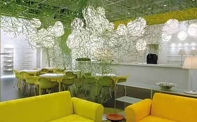 Algues est un système de modules imaginé par Ronan & Erwan Bouroullec en 2004 et édité par Vitra. Ces éléments en plastique injecté s’assemblent en rideaux, paravents ou cloisons plus denses, de la simple nappe légère au séparateur quasi opaque.