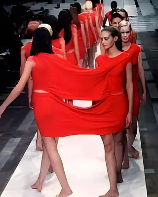 A-POC est un système de conception & de fabrication dévoilé par Issey Miyake et Dai Fujiwara à la fin des années 1990 : on produit un rouleau/tube de maille déjà pré-structuré (patrons, coutures/fusions intégrées), dans lequel l’usager découpe ses vêtements. L’objectif : réduire drastiquement les chutes, impliquer le porteur dans le “finissage” et industrialiser une idée proche du sur-mesure. Des ensembles A-POC complets (top, jupe, sous-vêtements, accessoires) figurent aujourd’hui au Met et au MoMA.