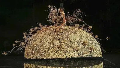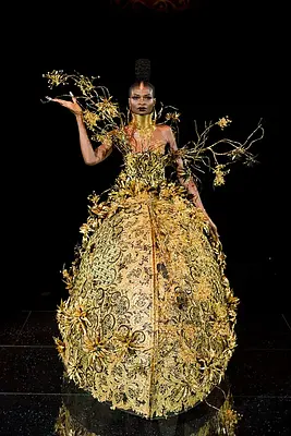 Elysium est la collection haute couture printemps-été 2018 de Guo Pei, présentée au Cirque d’Hiver Bouglione à Paris. Le podium devient un jardin onirique : racines blanches “en apesanteur”, scène circulaire noire miroir, silhouettes fleuries à plateformes cristallines. Thème déclaré : la vie (racines ↔ fleurs).