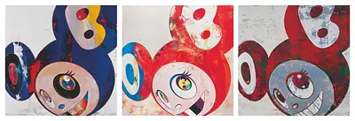 Sous ce titre à rallonge — volontairement obsessionnel — Murakami décline, dès le milieu des années 1990, une image-totem : Mr. DOB, son personnage-logo. La série existe en peintures de grand format (acrylique sur toile montée sur panneau) et en éditions (lithographies offset, sérigraphies), régulièrement réinterprétées en variations de couleurs et de tailles. Dès 1996, on voit apparaître des formats monumentaux (en deux panneaux ~280 × 300 cm), tandis que les éditions les plus diffusées sont souvent carrées, 50 × 50 cm (tirages de 300 exemplaires), puis 68 × 68 cm dans les années 2010. L’ensemble a fixé l’un des codes visuels les plus reconnaissables de l’artiste.
