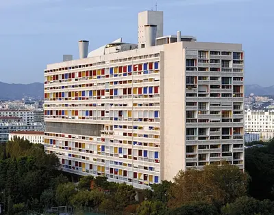 La Cité Radieuse, aussi appelée Unité d’Habitation de Marseille, est un immeuble résidentiel expérimental construit entre 1947 et 1952 par Le Corbusier. Située dans le 8ᵉ arrondissement de Marseille, boulevard Michelet, c’est une barre sur pilotis de béton brut, conçue comme une “cité verticale” pour environ 1 600 habitants, avec 337 appartements de 23 types différents. Elle inclut aussi une galerie commerçante, un hôtel, des espaces services et des lieux de vie communs intégrés.