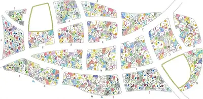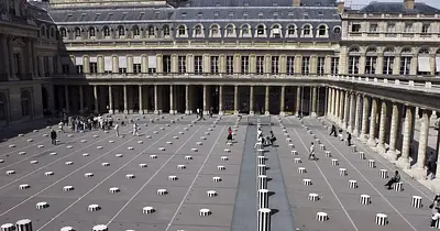 « Les Deux Plateaux », plus couramment appelées Les Colonnes de Buren, est une installation d’art public permanente réalisée entre 1985 et 1986 par l’artiste français Daniel Buren, avec la collaboration de Patrick Bouchain. Elle se situe dans la Cour d’Honneur (Cour d’Honneur) du Palais-Royal à Paris. Elle consiste en un quadrillage de 260 colonnes à rayures blanches et noires — sections octogonales — de hauteurs variables, s’élevant du sol ou depuis des tranchées souterraines, sur une surface d’environ 3 000 m².