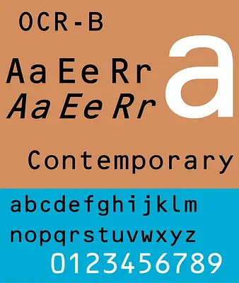 OCR-B est une linéale monospace conçue en 1968 par Adrian Frutiger pour Monotype afin d’optimiser la reconnaissance optique de caractères (OCR). Plus lisible pour l’œil humain qu’OCR-A, elle sera normalisée comme standard international et déclinée par Adobe/Linotype au numérique.