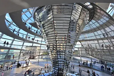 La coupole du Reichstag est une structure en verre et acier ajoutée au sommet du bâtiment historique du Reichstag à Berlin. Elle fait partie du projet de rénovation intégrale du Reichstag pour accueillir le Bundestag (le parlement allemand) après la réunification. Inaugurée en 1999, la coupole est devenue l’un des symboles architecturaux les plus visibles de Berlin, mêlant fonction parlementaire, symbolisme démocratique et innovations techniques.