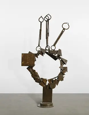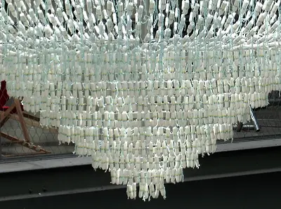 A Noiva (The Bride) est un lustre monument al dont les pampilles en “cristal” sont remplacées par des tampons hygiéniques (≈ 14 000 selon l’artiste ; souvent indiqué comme 25 000 dans la presse et certaines institutions). Présenté à la Biennale de Venise 2005, il a propulsé Vasconcelos sur la scène internationale.